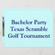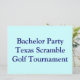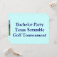You can personalise all the text on this bachelor party invitation. You can change the text and number on the front and use this for other types of golf invitations. The design features a golf coarse hole.