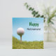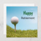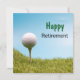 Golfer Happy Retirement with golf ball on green ready to tee off