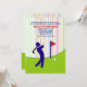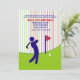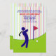 A fun design featuring a golfer silhouette on the green against a colourful striped background. Suitable for either gender and any age.