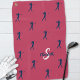 Cute golf design features a female golfer silhouette repeating pattern in dark blue on a trendy solid magenta red background. Add custom name and single letter initial in pink and white script with the easy to use modern template. All colours of this design are easily edited in the design tool. Use the message feature if you have a question or would like to request a custom colour.