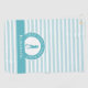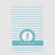 Trendy custom design features a female golfer silhouette set in a teal green and white shape bordered with curved text "GOLF GOLF GOLF GOLF" in crisp white font. A coordinating teal band holds a template for a monogrammed name, initials or custom text. The background is a modern teal and white stripe pattern. If you have any questions regarding this or any of my designs please contact beachpausedesigns@gmail.com. Custom colour requests accepted.