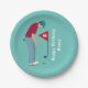 Teal personalised golfer, wearing a cap, deep red shirt and blue pants, putting a golf ball into a hole paper plates.
