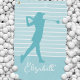 Stylish modern golf design features a female lady golfer action silhouette in teal over a classic coordinating light teal & white striped background. Customise with a name in stylish script with the easy-to-use template. All colours in this design are editable in the design tool. Use the message feature to request a custom colour.
