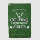 Celebrate the special dad in your life this Father's Day with our fun and humourous golf pun towel. The design features a fun and humourous golf typography design "Golfing is not fore everyone it takes A Lot Of Balls" green golf turf background. Perfect for your golf-loving dad. Put a smile on his face with the fun and humourous design. Great gift for Father's Day, Birthdays, and more!