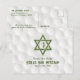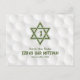 Golf themed Bar Mitzvah save the date postcard with a golfball background and green grass accents. This golfing Bar Mitzvah save the date postcard is stylish and modern. This golf themed Bar Mitzvah save the date postcard features a subtle dimpled golfball background with a Jewish Star of David and golfing icon. The colours on this elegant golfing themed Bar Mitzvah design are white and green. Your son's name is in a bold font.