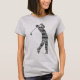 Golfer typography organic tee shirt. Women's short sleeved tee. Golf calligram design featuring a golfer made entirely from golf terminology.