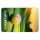 This flexible magnet is shown with a photo print of a golf ball on display for golf's finest.