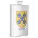 Hispanic surname Gomez heraldic shield drinking flask. Text below the shield is in a classical style font to match the colours on the shield.