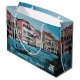 This stylish gift bag featuring painting of a gondola sliding on the calm waters of the picturesque Grand Canal from Venice, Italy is perfect for anyone who is in love with 'The Most Romantic City in the World.' Please replace the editable texts on both sides as needed.