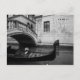 Black and white photo of a rain-soaked Gondola in Venice Italy.