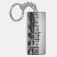 Photo keychain with a row of traditional gondolas in the water with Venice in the background in Italy in black and white.