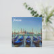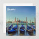 Watercolor painting of gondolas pier row anchored photo on Canal Grande with San Giorgio Maggiore church in the background, Venice, Italy. Parked gondolas on Piazza San Marco.