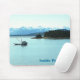 A fishing boat plies the waters of the Inside Passage; snow-covered mountains are seen in the distance. Text reading "Inside Passage" also appears.The Inside Passage is a coastal route for oceangoing vessels along a network of passages which weave through the islands on the Pacific coast of North America. The route extends from southeastern Alaska, in the United States, through western British Columbia, in Canada, to northwestern Washington state, in the United States. Ships using the route can avoid some of the bad weather in the open ocean and may visit some of the many isolated communities along the route. The Inside Passage is heavily travelled by cruise ships, freighters, tugs with tows, fishing craft and ships of the Alaska Marine Highway, BC Ferries, and Washington State Ferries systems. From a photograph taken by the artist.