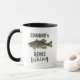 Gone fishing personalise coffee tea drinkware mug featuring funny cute for him keepsake, personalised coffee mugs modern, funny cute men for him, fish fisherman fishing bass nature, gone fishing simple minimalist minimal, whimsical fun typography text font, trendy stylish calligraphy script, nature wildlife up north illustration, camping outdoors largemouth bass, coffee tea drinks drinkware gift, dad boyfriend grandpa son name