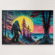 Gone Squatchin' Colourful Sasquatch Night Landscap Jigsaw Puzzle