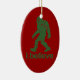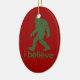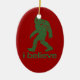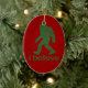 Cool Gone Squatchin Christmas Ornaments. Distressed green graphics on red background.