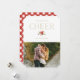 This classic design features gold text with a fun holiday floral bouquet and a traditional red gingham pattern.