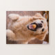 This heartwarming jigsaw puzzle captures a playful golden retriever mid-leap, eyes bright and tail wagging, ready to catch a tasty treat. With soft golden fur, expressive eyes, and an irresistible smile, this moment is full of energy, excitement, and unconditional joy.