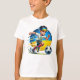 100% cotton so perfect for summer, It is a nicely designed t-shirt, the fabric is soft and the seams finished well, the body of the t shirt has no side seams. I bought a medium size for my two grandsons, aged 9 and 8 it will be slightly big on them but I would rather that than too small