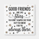 Celebrate the enduring bond of friendship with this beautiful quote design. Featuring the heartwarming message, "GOOD FRIENDS are like stars you don't always see them BUT YOU KNOW THEY'RE always THERE," this design is accented with charming star illustrations. Perfect for expressing appreciation for your friends, this versatile design is ideal for prints, cards, gifts, or home decor items. Share this sentimental reminder with your closest companions or add a touch of warmth to your own space. It's a lovely way to honour those special connections that shine bright, even when far away.
