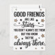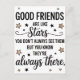 Celebrate the enduring bond of friendship with this beautiful quote design. Featuring the heartwarming message, "GOOD FRIENDS are like stars you don't always see them BUT YOU KNOW THEY'RE always THERE," this design is accented with charming star illustrations. Perfect for expressing appreciation for your friends, this versatile design is ideal for prints, cards, gifts, or home decor items. Share this sentimental reminder with your closest companions or add a touch of warmth to your own space. It's a lovely way to honour those special connections that shine bright, even when far away.