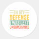 Good Funny In My Defense I Was Left Unsupervised _ Classic Round Sticker
