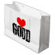 The word Good and a red heart above the word. Funny t-shirts, gifts, prints, souvenirs for fun and good mood.