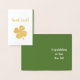 Good luck foil card, with a gold foil four leaf clove design. with a green background inside, you can customise with white typography lettering. Great for wishing someone congratulations on their new job or new adventure.