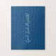 Good Luck Custom Name Script on Solid Blue Funny Jigsaw Puzzle