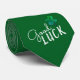Good Luck Four Leaf Clover Shamrock neck tie. Modern abstract green pattern with trendy white typography quote Good luck and hand-drawn clover with four leaves for luck.