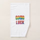 The t-shirt design features the simple yet impactful message: "GOOD LUCK." The phrase is written in a bold, eye-catching font, conveying a sense of optimism and support. To visually enhance the design, a lucky charm or a four-leaf clover could be incorporated, adding a touch of whimsy and good fortune. The overall aesthetic is positive and uplifting, offering a message of encouragement and hope.