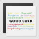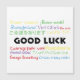 A design that says Good Luck in Many Languages like Spanish, French and Vietnamese. Also says it in a variety of colours like red, yellow and blue!