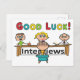 Applicant faces a panel of three interviewers who sit behind a large desk. Our hero sits on a single chair in front of them and hopes to answer the questions correctly, create an impression and get the job, course or opportunity that the interview will lead to. Give someone support with this message and wish them luck for their future. Hand drawn original humor with fondness.