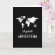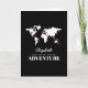 Bon voyage backpacker greeting card featuring a black background that can be changed to any colour, a world map, pushpins added to different destinations and a good luck template. Click on the “personalise” button for further customisation including moving the pins to the desired countries.