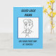 Good luck on your first day at school card featuring a cartoon of a schoolboy wearing a school cap and shirt and tie. Card has a blue surround. Easily personalise this card by editing the template text. Thanks for viewing my designs!