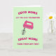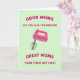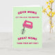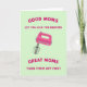 Designed with a modern kitchen theme, the card features a handheld mixer in bright electric pink, tilted at an angle as if mid-bake. Behind it, a soft pastel green background keeps the scene calm while letting the pink stand out, like a sweet little moment shared over dessert ❤️. At the top, rounded fuchsia lettering reads, “GOOD MOMS LET YOU LICK THE BEATERS,” giving the design a gently teasing, affectionate tone. Near the bottom, matching fuchsia text answers with, “GREAT MOMS TURN THEM OFF FIRST,” adding a caring, watchful touch that feels like a knowing look from a parent 👩. The mixer’s whisk attachments are clearly shown, with smooth shading that makes the metal tips look slightly glossy. The simple shapes and tidy spacing keep the focus on the joke and the cosy kitchen memory it suggests. The electric pink mixer sits centred on the pastel green field, with the fuchsia text placed above and below to frame it neatly.