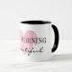 Good Morning Beautiful or sunshine 11oz ringer coffee mug. Cute vintage pink love symbol design with elegant script typography. Custom background colour and personalizable template text. Funny Birthday or Valentines Day gift idea for gorgeous wife, bride, girlfriend, lovers, partner etc. Make your own drinkware with quote or saying. Also nice for classy wedding party, couples shower, bridal shower Romantic heart design on black and white cup colours. Customisable for handsome husband, boyfriend or partner.