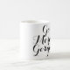 Tell your gorgeous Good Morning with this friendly mug in simple black and white script.