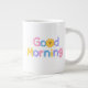 The term "jumbo mug" refers to a large-sized cup or mug that is designed to hold a larger quantity of liquid than a standard-sized coffee or tea mug. These oversized mugs are typically made from sturdy materials such as ceramic or porcelain to ensure durability and heat retention. With their larger capacity, jumbo mugs provide the user with the convenience of enjoying more hot beverage without the need for frequent refills. Moreover, they often feature an ergonomic handle that makes it easier to hold and sip from, ensuring a comfortable drinking experience. Jumbo mugs have become increasingly popular among avid coffee or tea drinkers who prefer larger servings or those who simply enjoy savouring their hot drinks over an extended period. Their size also allows for customisation and personalisation, making them a favored choice as gifts or promotional items for businesses seeking to elevate their brand recognition.
