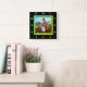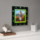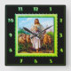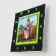 Jesus Good Shepherd green square clock.Has Jesus with his sheep walking in a field with them all looking at him. With a light blue sky and green grass behind them.And he has a white outfit on holding a baby sheep.This is a vintage photo from the early 1900.John 10:7-21 I Am the Good Shepherd