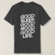 Set against a rich black background, the design delivers high contrast and strong visual impact. The word “GOOD” in each line is styled in a dynamic white brush script, adding movement and energy, while the other words stay grounded in clean, uppercase block lettering. Subtle white gradients in the brush strokes give the text extra depth and texture.