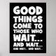 Sometimes, patience is all you need… or maybe a little more than you expected! This funny design playfully reminds us that waiting doesn’t always bring immediate results, but it sure teaches a lesson in endurance. Perfect for anyone who appreciates a humourous twist on the classic “good things come to those who wait” saying. Ideal for friends, family, or anyone who needs a lighthearted reminder to keep hanging in there, even when the waiting game gets tough. This witty design makes a great gift for people with a sense of humour about life's slow moments, from students to professionals and everyone in between.