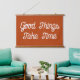 Good Things Take Time Rust Burnt Orange Retro Script Canvas Flag Hanging Tapestry with a motivational quote for more positivity in your life.