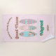 Make your family beach vacation unforgettable with this custom beach towel. Perfect for family outings to the beach, featuring a stylish surfboard design that embodies the spirit of sun, sea, and surf.