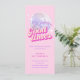 This pink party invitation features a disco ball and retro typography, giving it a fun and playful vibe. The front of the invitation is adorned with a pink background and a glittering disco ball, setting the tone for a lively and energetic celebration. The retro typography adds to the theme, giving the invitation a nostalgicically chic feel. On the back side of the invitation, custom photos of the birthday girl and her friends are featured, adding a personal touch to the design.