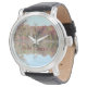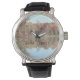 Designer watch with lake side reflection, trees, and water. Outdoors-man style, personalise the text for yourself or a custom gift.