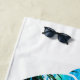 Imagine a vibrant collection of beach towels, each one a statement of summer fun and relaxation. This assortment features a variety of designs, from bold tropical prints with lush palm leaves and flamingos to classic striped patterns in sun-soaked hues. Some towels boast playful seaside motifs like waves, seashells, and surfboards, while others have a sleek, minimalist aesthetic with soft pastel tones.