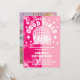 This pink party invitation features a disco ball and retro typography, giving it a fun and playful vibe. The front of the invitation is adorned with a pink tie dye background and a glittering disco ball,stars,dance girls setting the tone for a lively and energetic celebration. The retro typography adds to the theme, giving the invitation a nostalgicically chic feel. On the back side of the invitation, custom photo of the birthday girl adding a personal touch to the design.