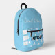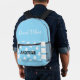 Stylish blue backpack featuring a positive "Good Vibes" script and bold name monogram on the front pocket. Perfect for school, work, or everyday use.