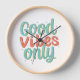 This vibrant hand-lettered artwork, featuring the phrase "Good Vibes Only," serves as an uplifting reminder to embrace positivity and joy. Crafted with meticulous attention to detail, the design combines playful typography with a lively colour palette, making it an ideal addition to any space seeking a cheerful atmosphere. Perfect for home decor, offices, or as a thoughtful gift, this piece inspires a mindset focused on happiness and good energy.